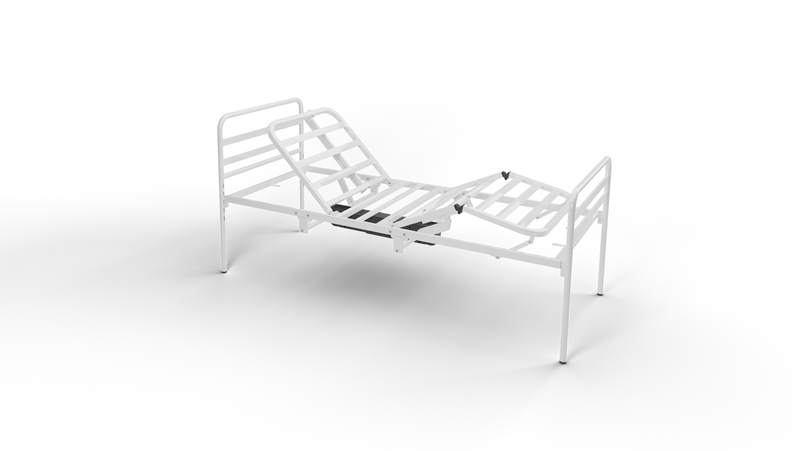 Le sezioni sono quattro di cui lo schienale e il femorale sono articolati a mezzo di un attuatore elettrico a doppio motore comandato da pulsantiera a B.T. utilizzabile sia dal paziente che dal caregiver.
