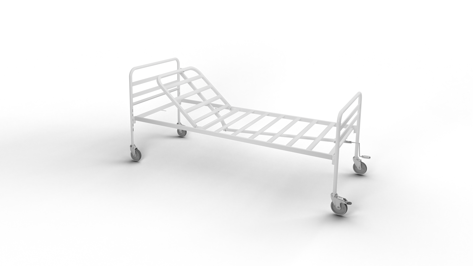 Il telaio perimetrale è realizzato in profilo di acciaio a sezione rettangolare con spigoli arrotondati. Il piano rete ortopedico è realizzato con doghe metalliche profilate e innervate; completo di predisposizione per l’applicazione dell’asta solleva malato. Altezza fissa in fase di utilizzo ma posizionabile su quattro diversi livelli.